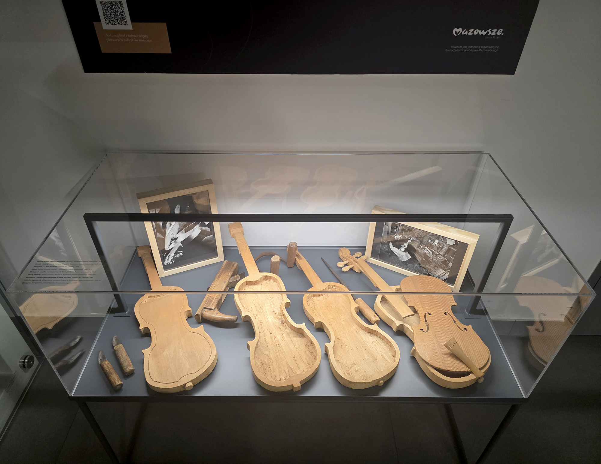 Wśród obiektów znajdują się m.in. skrzypce w różnych fazach budowy, narzędzia z warsztatu lutnika; skrzypce klejone, rzeźby z surowego drewna, cytra koncertowa, bandonia, sierszeńki dwupęcherzowe, klarnet Es, bębenek z brzękadłami i pałką, kołatka jednomłoteczkowa i dzwonki pasterskie.