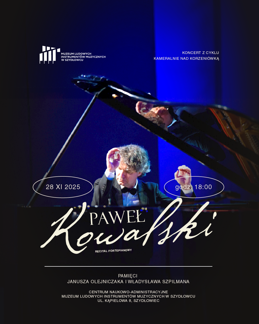 Muzeum Ludowych Instrumentów Muzycznych w Szydłowcu zaprasza w piątek 28 listopada 2025 roku do Centrum Naukowo-Administracyjnego na kolejny w tym roku koncert z cyklu „Kameralnie nad Korzeniówką”.
