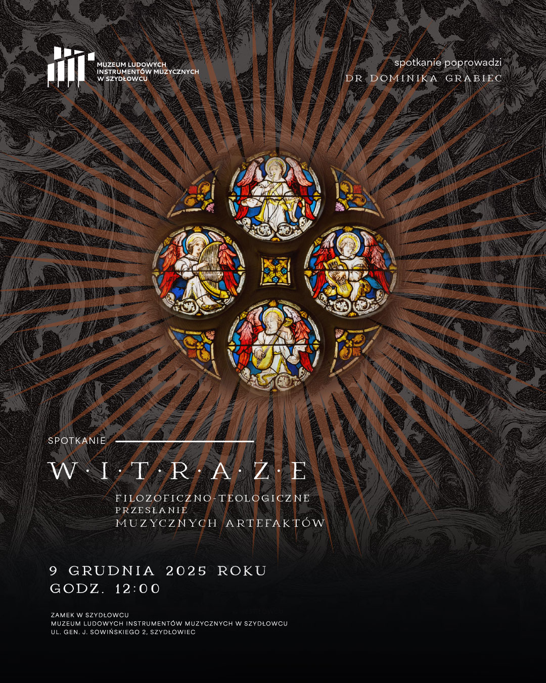 Muzeum Ludowych Instrumentów Muzycznych w Szydłowcu zaprasza na kolejne spotkanie poruszające zagadnienia związane z tematyką wystawy czasowej „Muzyka światła. Witraże. Od artefaktu do metafizyki”. Spotkanie odbędzie się w zmienionym terminie, czyli 9 grudnia 2025 roku w szydłowieckim zamku w sali wystaw czasowych.