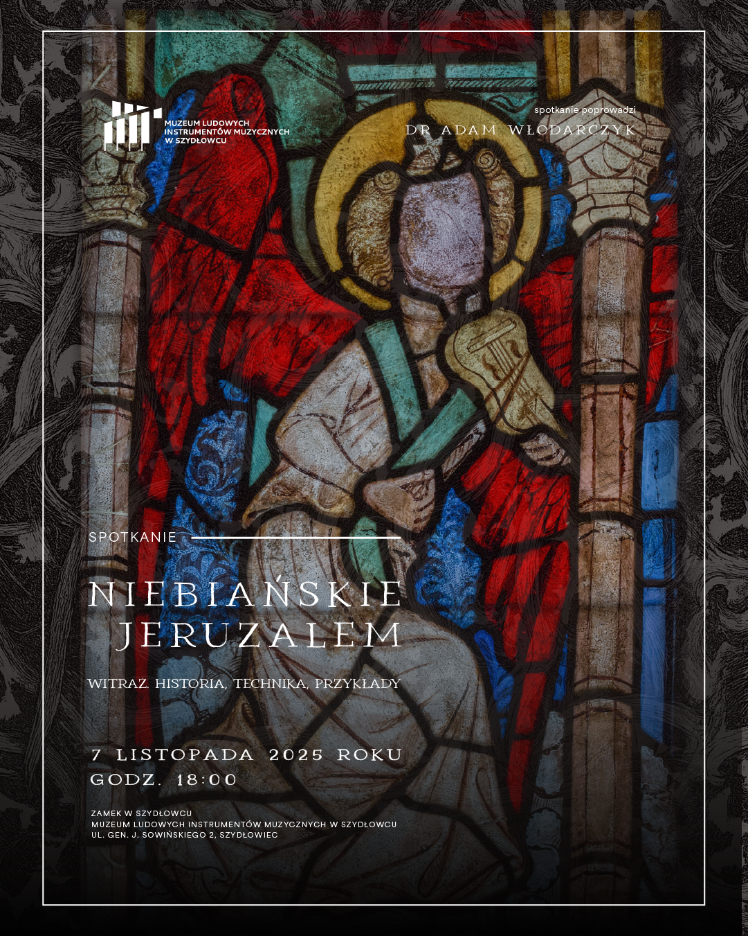 Muzeum Ludowych Instrumentów Muzycznych w Szydłowcu zaprasza na spotkania poruszające zagadnienia związane z tematyką wystawy czasowej „Muzyka światła. Witraże. Od artefaktu do metafizyki”. Pierwsze z nich odbędzie się w piątek 7 listopada 2025 roku w szydłowieckim zamku w sali wystaw czasowych.
